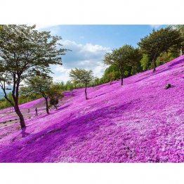この芝ざくらは1957(昭和32)年、公園入り口にミカン箱1つの苗が植えられたのが始まりで、いまや10万平方メートルに広がる。国内最大級を誇る大群落だ。スイーツのような甘い香りに包まれる鮮やかなピンクのじゅうたんは、まさに圧巻。丘陵地の裾野を流れる渓谷とともに、幻想的な雰囲気を演出する。