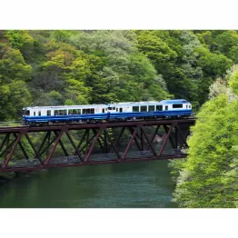 会津鉄道の「お座トロ展望列車」は自然をそのまま体感できる車両が魅力で、会津若松駅から会津田島駅間を片道約1時間半で結ぶ2両編成。席は「お座敷車両」「トロッコ車両」「展望車」の3つから選ぶ。6~9月のトロッコは窓枠がなく、自然の香りや音、風なども感じられ臨場感たっぷり。お座敷は掘りごたつ風、展望車はリクライニングシートで、いずれも全面展望が売りだ。