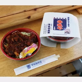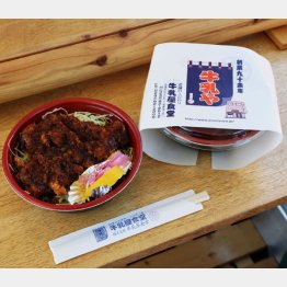 さて、絶品メシは芦ノ牧温泉駅前にある「牛乳屋食堂」が作るソースカツ丼駅弁(1500円)だ。花号、星号、風号に限り、この駅弁が3日前まで予約できる。
