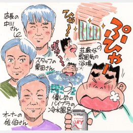 服を着たら、フロントで缶ビール270円を購入。「漫画5000冊以上がそろった2階の休憩ルームでくつろいでください」とサウナとコーヒーをこよなく愛する店長の中川洋瑛さん。グビッとあおれば、体内細胞がハレルヤ~♪ の大合唱。涙モノのウマさっス。