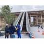 70年万博当時、来場者は右腕内のエスカレーターを通って地上30メートルの大屋根まで上がって行けたという。現在は腕の付け根から先の空間を見通せるだけだが、規則正しく先が細くなるように組まれた鉄骨は青やピンクの照明に照らされ、不思議と見飽きない。