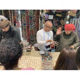 コモンズA館には、アフリカやヨーロッパ、中東、アジアなどから29カ国が出展している。とりわけ賑わっていたのが、手作りの工芸品や宝飾品を販売する中東・イエメンのブース。「海洋資源の持続可能な管理」(スリランカ)など、どの国も展示の幟に真面目なメッセージを載せる中、なぜかイエメンは「いつでもイエメン」と意味深。だが、それがいい。