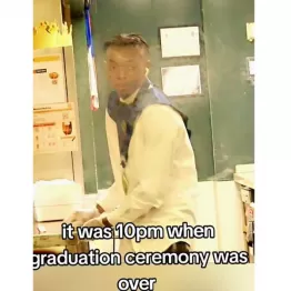 自分の娘と同じ年頃の若者が卒業式の夜に一生懸命働く姿に心を動かされたマリアさんは、彼が働く様子を撮影して5月21日にTikTokに投稿したところ、急拡散。写真はその動画のひとコマだ。