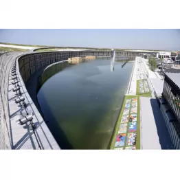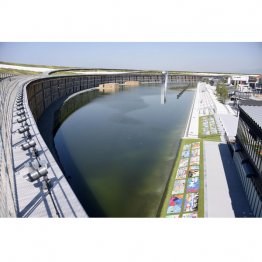 広さ3ヘクタールの「ウォータープラザ」には大阪湾の海水が引き込まれており、約300基の噴水が設置されている。この広大な施設は、万博会場で大量発生している羽虫「ユスリカ」の発生源にもなっており、大屋根リングの上で蚊柱が発生するなどの問題になっている。