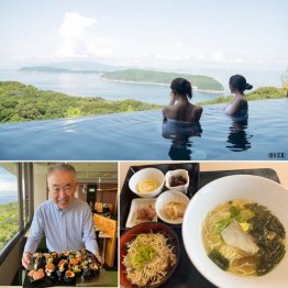 希望日に空室がなければ、日帰り入浴(1500円)とランチを楽しむ手もある。ランチの鯛ラーメンはしらす丼が付いて1700円。鯛の中骨を焼き、水に1日浸してうまみを抽出したスープは、豚骨スープを少し加えてコクを出した。スープをまとう鯛の刺し身はほんのりと甘く、ゆずのアクセントが味を締める。