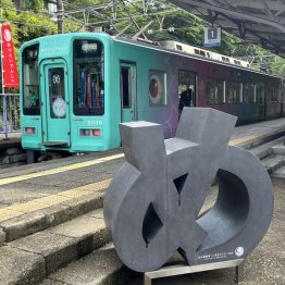 和歌山市駅の隣、紀ノ川駅と加太駅を結ぶ南海電鉄「加太さかな線」は、“5匹”の観光列車「めでたいでんしゃ」が定期運行するユニークな路線。窓に目、車体にウロコを描き、レールの上を鯛が泳ぐように走る。