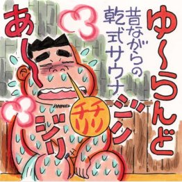 平日の午後とあって、ほぼ独占状態で正面のテレビを見ながら熱波に身をゆだねるのがぜいたく。でも、時間帯によっては混雑するそうです。