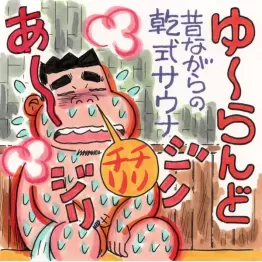 一通り楽しんだら下地もできた。それではサウナに参りましょう。ドアを開けると、おおっ、サ室も渋い。昔ながらの乾式がうれしいねぇ。