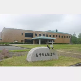 長門市立図書館は1998年、市街地の中心から現在の場所に移転。緑豊かな長門市総合公園の一角に位置し、通りを挟んだ向かいには劇場、体育館、レストランを併設する複合文化施設「ルネッサながと」がある。
