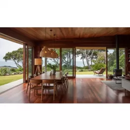 米スタートアップ企業インベントウッド社が開発した「スーパーウッド」で、化学的処理と加熱・圧縮で、原料の木材を分子レベルで再構築し、驚異的な性質を実現しているという。写真(同社の公式サイトから)はスーパーウッドの建物だ。