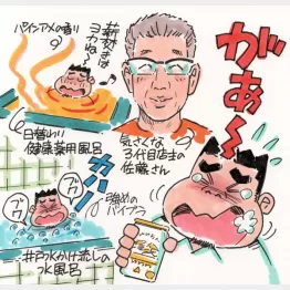 服を着てフロントで缶ビール250円を購入。漫画がズラリ並んだ休憩コーナーのソファに座ってチャージすれば、がぁー、細胞が踊り出すうまさ。今回もイイ気持ちで肌がサラッサラになりました。さりげない昭和感がうれしい穴場です。 (イラスト・文=太田由紀)