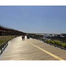 高さが最大20メートルということもあり、景色は壮観。約2キロの外周を歩いていると、設置されたスピーカーから時折「環境省と気象庁から熱中症警戒アラートが発出されています」とアナウンスが流れる。開幕直後はリング上部に客がごった返していたが、この日は暑さのせいかガラガラだった。