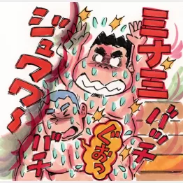 余裕をかましていたら30分ごとのオートロウリュタイムになったようで、ストーンがライティングされ、ヒーター上部の2つ穴から勢いよくシャワーがザバーッ。わずか10秒ほどでも、途端に室温が上昇。上段はバッチバチの熱波針が飛び交いはじめたぞ。あ~、耳が超イタイよぉ。