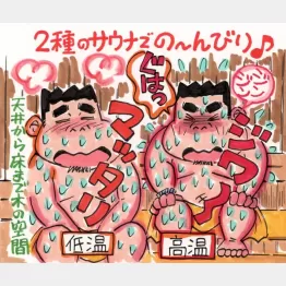 42度。広めの白湯内には背中と腰にボボボのジェットコーナーが2床。気持ちよく温まったら、サウナでしょう。