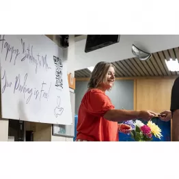そこでクリスティーナさんは空き瓶のリサイクルや募金で3700カナダドル(約40万円)以上を集め、250枚の駐車無料券を準備。8月12日、病院のがん病棟の入り口で「私への誕生日プレゼント。あなたの駐車料金は無料です」と書かれたバナーを掲げ、患者たちに無料券を配布した(写真=ロンドン・ヘルス・サイエンス財団のフェイスブックから)。