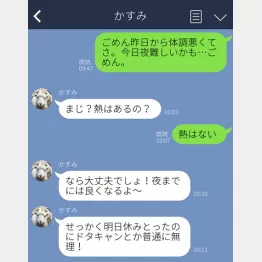 デートの前日に、悪天候の中、外で仕事をしていたので体調を崩してしまい、当日の朝に僕からデートを断るLINEをしたんです。ドタキャンになってしまったのは僕が悪いと思いますが、こういう言い方や考えはちょっとひどくなくないですか?