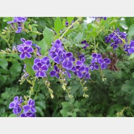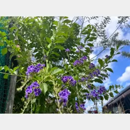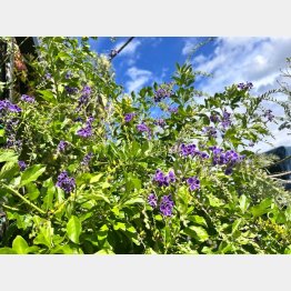 そりゃ気になりますよね〜。花の重さで枝が垂れ下がる姿は、本当に立派! 今回は人気なのに日本では越冬しにくいあのお花がテーマです。「なんでこの名前? 生命力旺盛な紫の貴婦人、デュランタ宝塚」の解説でございます。