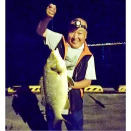 南国沖縄でも、10月から12月は過ごしやすく、夜は20度前後。釣りには最高の気候で、港の常夜灯に照らされた水面には小魚が群れています。そんな絶好の環境で挑めるのがタマン釣り。現地ではほぼ一年中釣ることができる最もポピュラーな魚で、護岸などで夜に行います。