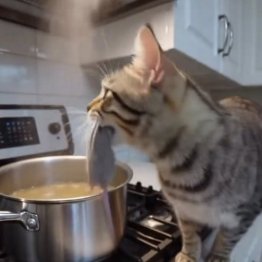ママに贈り物? 保護ネコがまさかの獲物をスープに投入…米動物団体の動画に飛び交う笑いと悲鳴