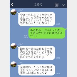 えみりが妊娠したという話は親から聞いていたし、うちの子はもう5歳になったので、家にあるものなら! と思って『いいよ~!』と返信。しかしその後、『クリーニングに出して』『うちに届けて』っていう内容が来て『え!? どんだけ図々しいの?』って思いました。