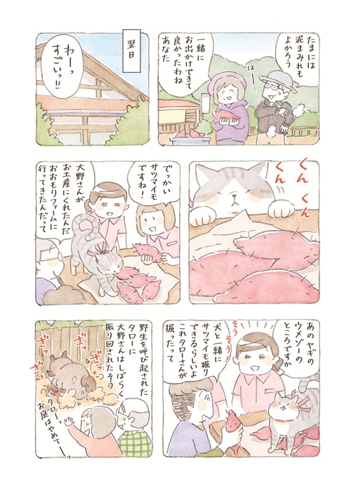 【動物&飼い主ほっこり漫画】しっぽのお医者さん~ねこ医院長のぽかぽか日記 第105回「サツマイモ祭だーっ」
