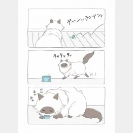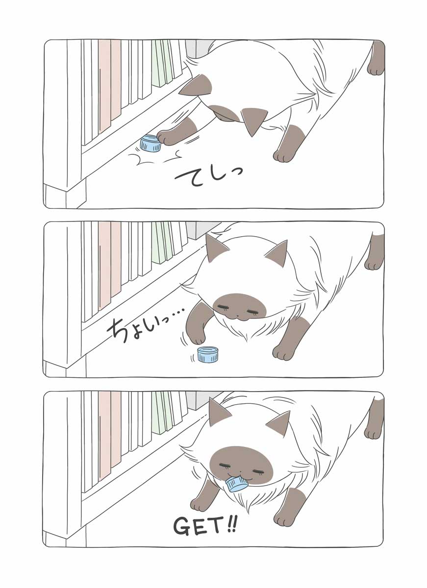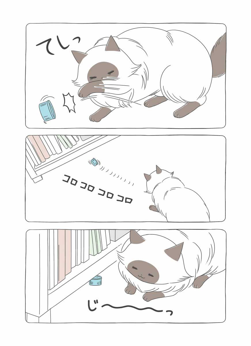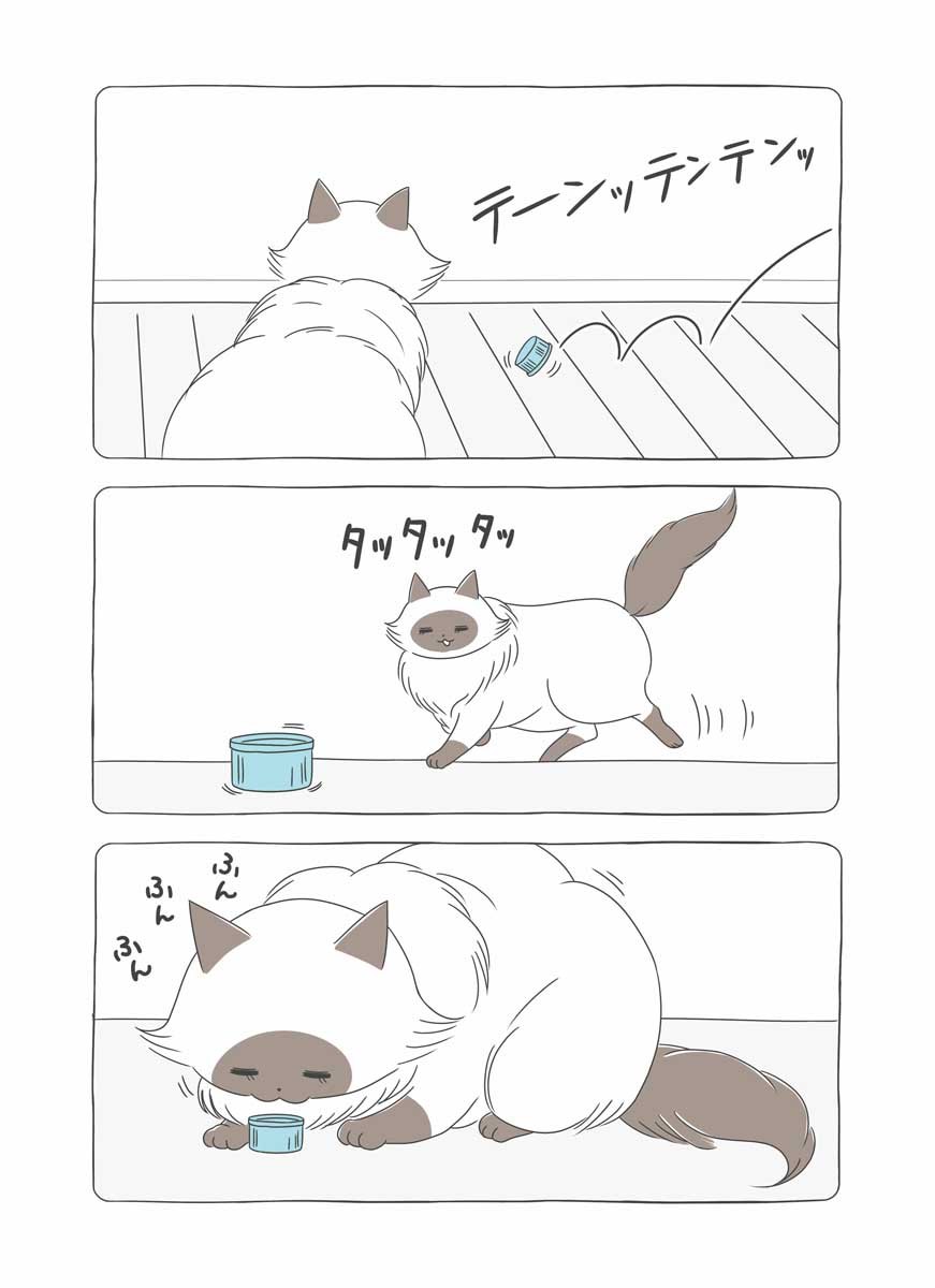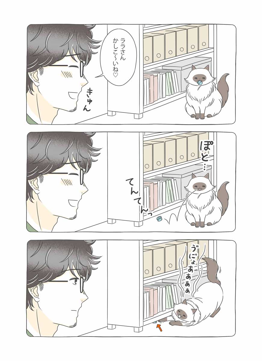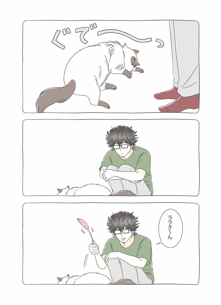 暑い夏の日、ごくごくと麦茶のペットボトルを飲み干す浅田くん。手を滑らせ、床に落としたペットボトルのキャップはララさんのおもちゃになってしまい…ララさんも楽しそう。