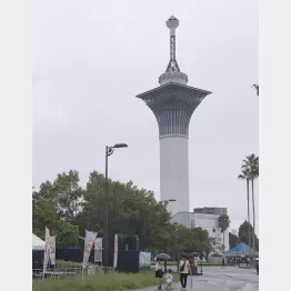 塔事務所の入り口のガラスには割れたような痕跡があり、テープで補修されている。普段は職員も立ち入らないのか、ドアには南京錠がかけられていた。塔の前にいた市内在住の20代男性はこう話す。