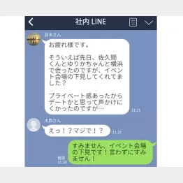 内容は「そういえば、先日横浜でプライベートの2人を見たけど、イベント会場の下見か何かですか?」と聞かれました。すぐに別の同僚が「マジで!?」と反応。