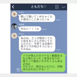 友達は「さっき駅を歩いていたらおじさんが歩いていて、今来てる台風の風でヅラが飛びそうになったのね」と報告。