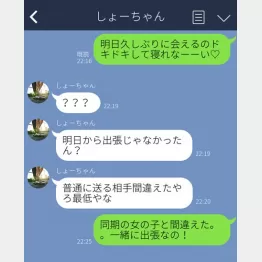 「しょーちゃんは彼氏。ちょうどケンカしていた時期に元カレからLINEがきて、久しぶりに会う流れになったんです。彼氏には『出張がある』とウソをついて、頻繁にLINEのやりとりができないかもと伝えていたんですよね。