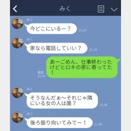 『隣にいる女の人は誰?』『後ろ振り向いてみて』とLINEが来た瞬間は、そりゃーもう心臓バクバクでした。