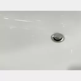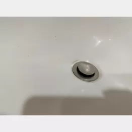 特に汚れが気になっているのは、排水口近く。フチには蓄積汚れなのかキズなのか? と思われる黒ずみもあります。
