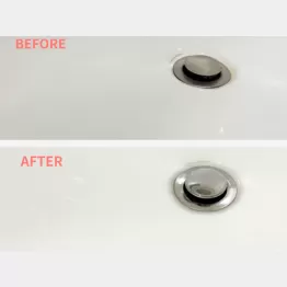掃除前には輝きが感じられなかった洗面ボウルが、たった30秒の掃除でこんなにキレイになりました。