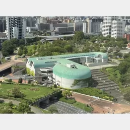 1975年4月開館。子ども図書館・文学館を併設した複合公共施設で、今年開館50周年を迎えた。丹下健三に師事した建築家・磯崎新氏(1931~2022年)による丸みを帯びた設計がユニークだ。76年に第17回建築業協会優良建築賞を受賞している。