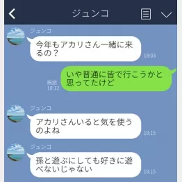「LINEの相手は僕の母、そしてアカリは僕の妻です。これを見てもらって分かる通り、母と妻はあまり仲良くないんですよね。母がこうやって『アカリさんは連れて来ないで』って遠まわしに言ってくるので、帰省したくなくなるんですよ。