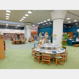 「閲覧室は2階にあり、約4000平方メートルのワンフロアです。広いので目当ての本を探しやすくするため、児童書は緑色など、床のカーペットでジャンルごとの色分けを行っています」(露口館長)