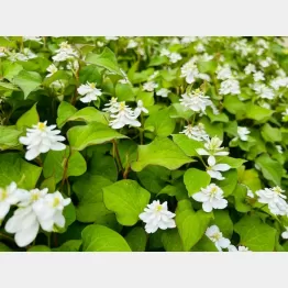 ドクダミと一口でいっても色々ございます。八重咲のドクダミはとっても可愛いらしいビジュアル。思わず苗をいただき植えたところ、2年後にはやはり地獄を見ることに…育てるなら、地植えは絶対にやめましょう。