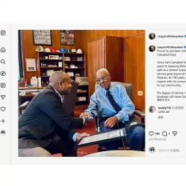 長年にわたり、地元社会への貢献が認められ、数々の賞を受賞。ミルウォーキー市長からは昨年2月に彼にちなんだ特別な日を設立。またミルウォーキー市警からは「署長優秀リーダーシップ賞」を授与された。写真は「ジュリアス・ジョンソン・デー」設立のひとコマで、キャバリエ・ジョンソン・ミルウォーキー市長が自身のインスタグラムに投稿したもの。