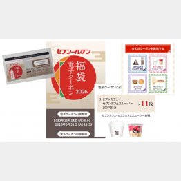 コラボ商品を含むオリジナルグッズ4点と、セブン-イレブンで使える電子クーポンのお得な福袋です。