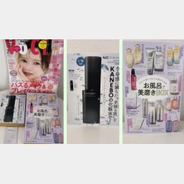 KANEBOの名品化粧水がミニボトルなのもさすがVOCE、期待を裏切りません。現品で全部そろえるのは大変ですが、今回の付録ならあれこれ気軽にチャレンジできますね♡