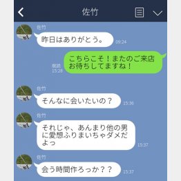 「私はキャバクラで働いています。LINEの相手はお店に来たお客さん。他のお客さんと同様にLINEを交換したんですが、見てくださいよコレ…。ただお客さんとして『また来て』と送っただけなのに、『そんなに会いたいの?』『会う時間作ろっか?』って言ってきてキモかったです。