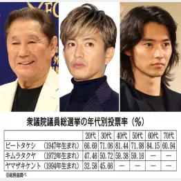「受験」「大雪は」言い訳にならない! ビートたけし、木村拓哉、山﨑賢人…それぞれの世代の投票率