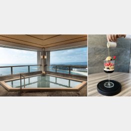 最上階の温泉大浴場も魅力のひとつ。露天風呂につかりながら眺める太平洋の絶景は生涯忘れられない美しさである。