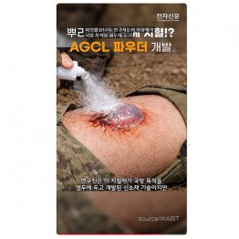 韓国科学技術院(KAIST)が開発した粉末型止血剤「AGCL粉末」で、開発者によると、傷口にスプレーすると、血液中のカルシウムなどと反応して瞬時に「ハイドロゲル」と呼ばれる水分を多く含んだゼリー状の物質に変化し、傷口を塞いで止血する。ハイドロゲルは自重の7倍もの血液を吸収できるという。