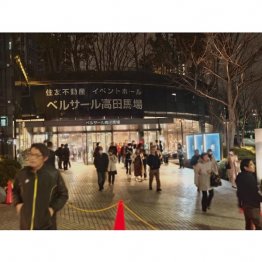 開演30分前の午後0時半ごろ、会場の「ベルサール高田馬場」(東京都新宿区)前にはすでに、来場者が50メートル近い長蛇の列をつくっていた。入り口では手荷物検査や金属探知機でのボディーチェックが行われ、厳戒態勢だった。