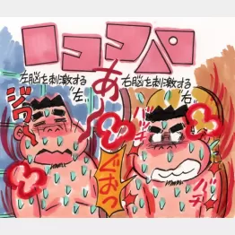 1つにどっこいしょすっと、設定95度が気持ちいいぜ。何も考えずにまどろむのが右脳を刺激することから、「右」なんだとか。ボケーッとしていると、正面に赤く光っていた大きな円のオブジェが消えちゃった。あれれ、と思った瞬間、20分ごとのオートロウリュが長めの10秒以上続き、憩いの部屋が灼熱と化し、「ムリ」と脱落っス。