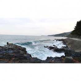 海を望んで左手側の「大根」には先客がいるかもしれませんが、水深が浅い右手側の「小根」は大丈夫。フカセ釣りではウキ下1.5メートルでも根掛かりの懸念があるものの、凪で潮位が高い時にはキロ級のメジナが期待できます。コツは3Bか4Bの重さのある浮きを使い、なるべく遠くに投げ込むこと。針に掛かったらゴロタの間に潜りこまれないように即座にブッコ抜く。想定外の大物に備え、硬めの磯竿に3号ハリスを組むのが無難です。