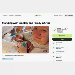 ブラントリーちゃんは出生後、敗血症性ショック、腎臓障害、3月ごろには脳卒中を経験。今後、複数回の手術が行われる予定だ。今回のオークションの他に、ネットファンディングのGoFundMeにも医療費などを支援するサイトが立ち上げられている。写真は同サイトに掲載されたクリスタルさんとブラントリーちゃんだ。