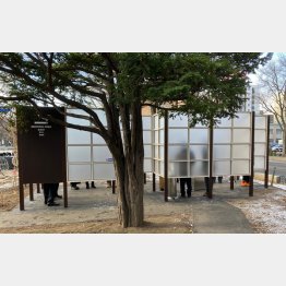 実証実験開始後の平日に新設の喫煙所を訪れてみた。幅2.7メートル、奥行き7.5メートルのスペースが高さ2.4メートルのパネルで仕切られ、十数人の喫煙者が利用していた。