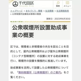 さらに、令和6年度からは<民間事業者等が行う屋外分煙施設の整備に対する助成に要する経費>として事業費の2分の1を上限として、特別交付税の措置の対象に追加するとしている。自治体の財政負担を軽減しようというものだ。